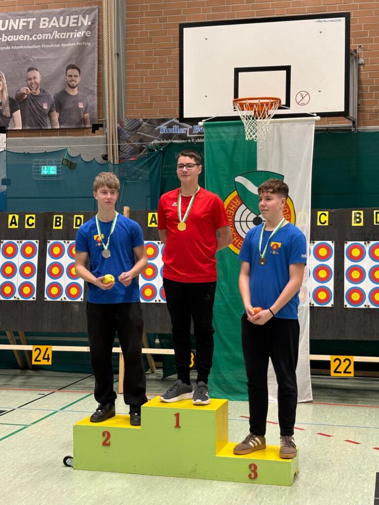Der Großteil unserer Schützinnen und Schützen ging am Samstagvormittag an den Start. Besonders erfolgreich war dabei der Auftritt unserer Recurve-Jugend. Leon Schiffers zeigte einen herausragenden Wettkampf und wurde mit 518 Ringen Landesmeister. Kim Benisch konnte diesmal nicht ganz an ihre sehr gute Leistung von der Bezirksmeisterschaft anknüpfen, erreichte in der Einzelwertung jedoch einen starken fünften Platz mit 479 Ringen. Felix Lenertz hingegen konnte sich im Vergleich zur Bezirksmeisterschaft leicht steigern und belegte mit 391 Ringen den zehnten Platz in der Einzelwertung.